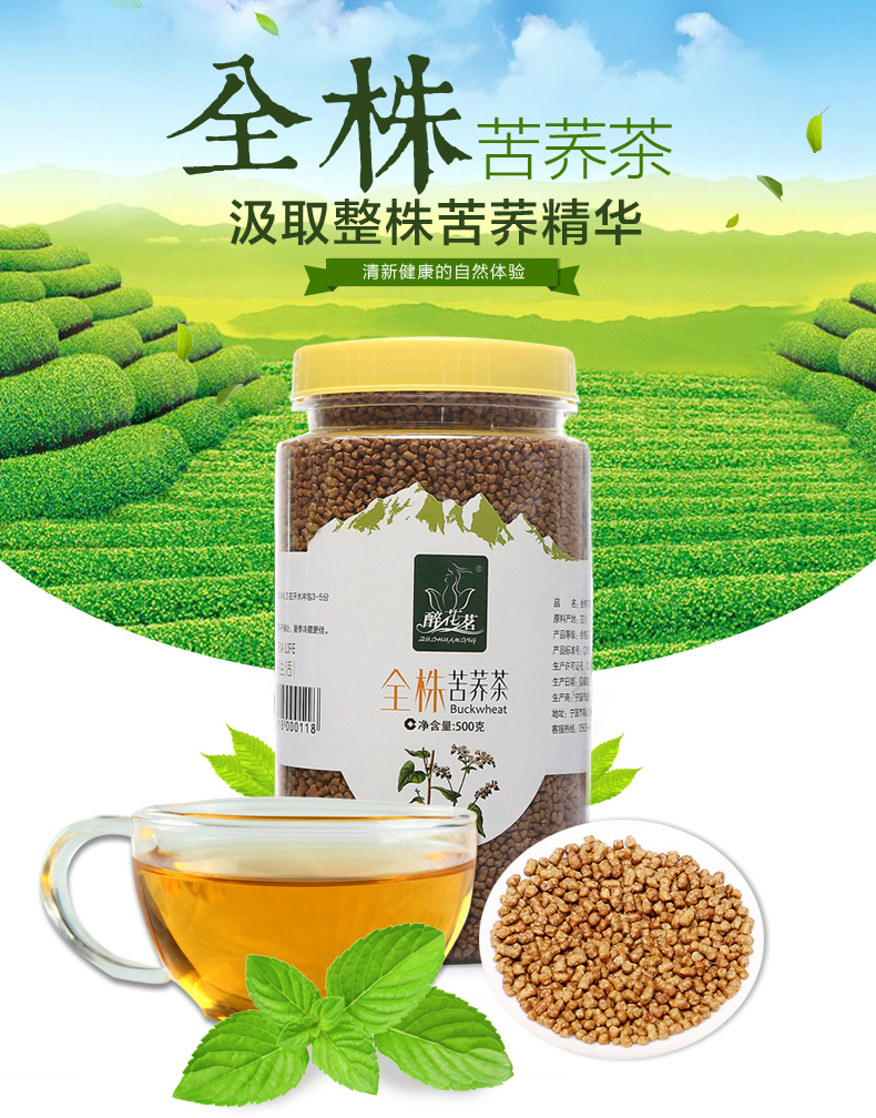 醉花茗 苦荞茶 500g 四川凉山 黑苦荞茶全胚芽 荞麦茶 全株买2送1